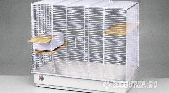 Leírás: Fop Chinchilla ketrec, mérete 90x52x81cm, kettő darab fa kiülővel és egy fém chinchilla fürdővel. A fotó illusztráció, a ketrecet fehér tálcával és króm színű ráccsal tudjuk adni.